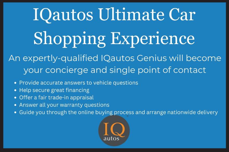 Also, we can tailor mechanical protection plans (commonly referred to as "extended warranties") to give you further peace of mind beyond your factory warranty. Gap Protection and Tire/Wheel Protection are available, but completely optional. IQautos is a single point of contact, concierge car buying experience, you will speak to 1 person to handle your complete transaction, no games, car buying the way you want it.